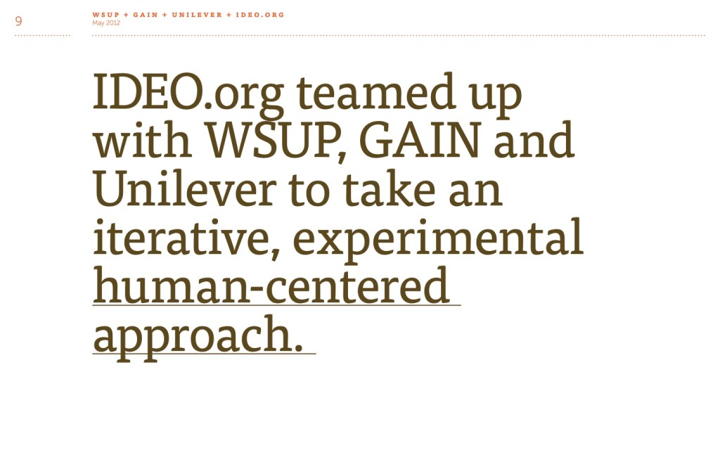 We engaged with IDEO.org to help us design a business to address the challenge. The human-centered design process took several week, numerous interviews, observations and mini-experiments to reach the final product. A sample of the final deck is presented below.